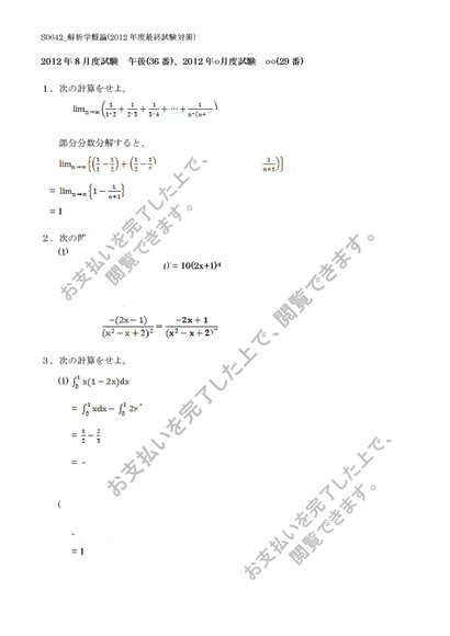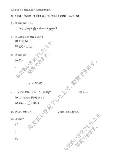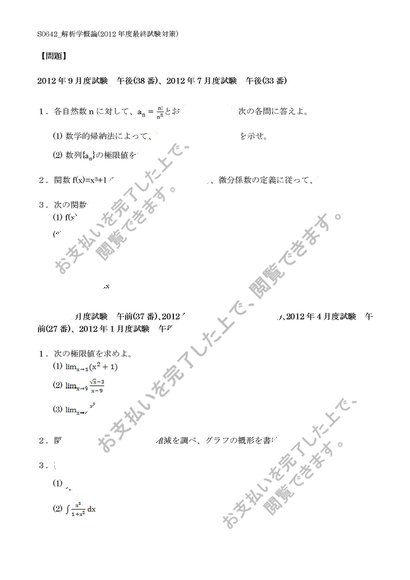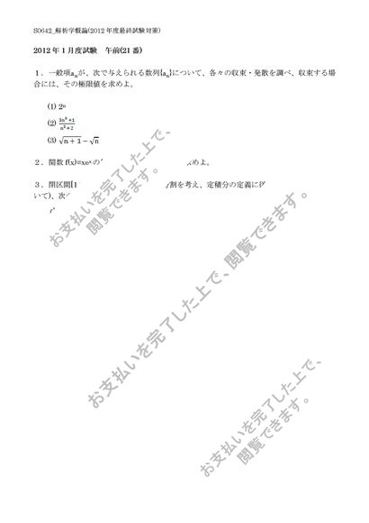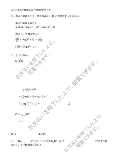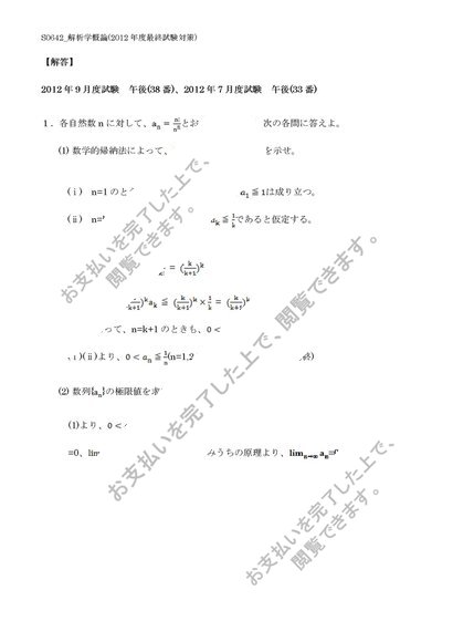 【佛教大学】【2012年度科目最終試験対策】S0642_解析学概論