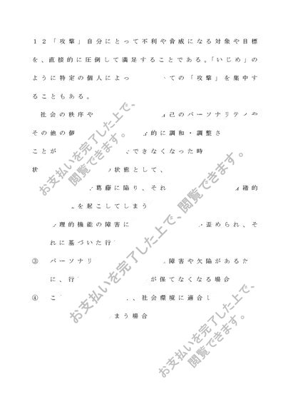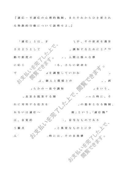 佛教大学 教育心理学 第二設題 適応・不適応の心理的機制、またそれからひき起される特徴的行動について