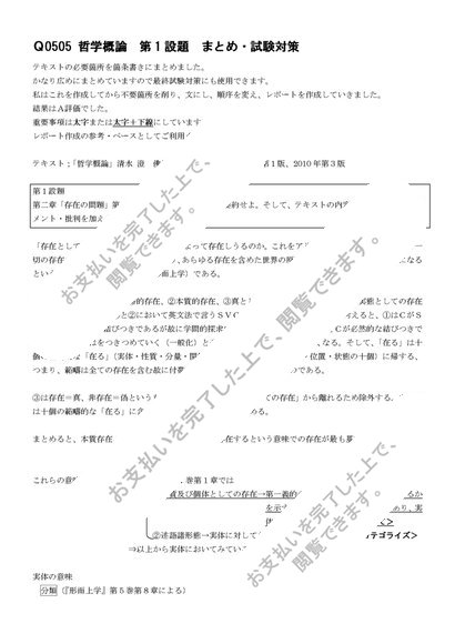 Q0505 哲学概論 第1設題まとめ・試験対策