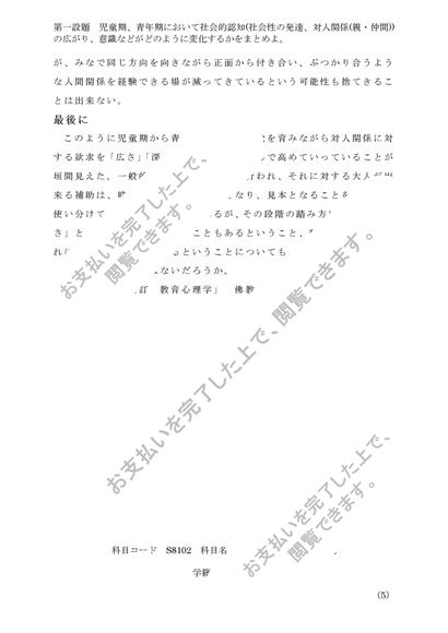 佛教大学 レポート 2016年度最新版 S8102 教育心理学1 A判定