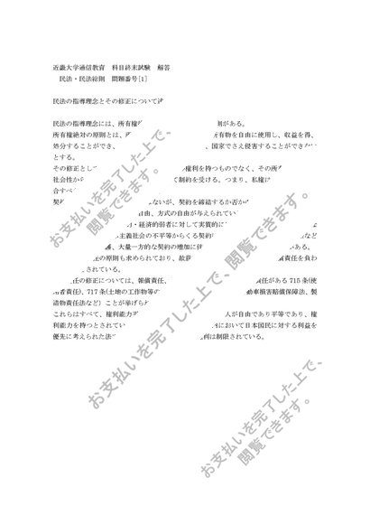 [2002]民法・民法総則 【奇数】近畿大学通信教育科目終末試験[平成25年4月~平成27年3月]