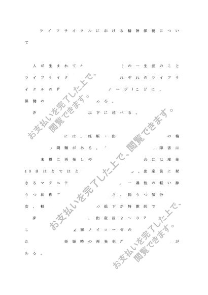 精神保健学 3,200文字レポート「ライフサイクルにおける精神保健について」清書 終
