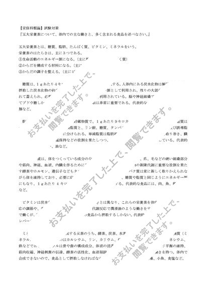 【家庭科概論】試験対策 『五大栄養素について、体内での主な働きと、多く含まれる食品を述べなさい。』