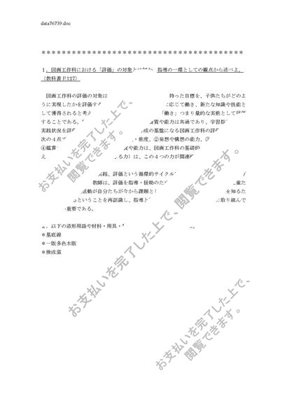 752初等図画工作科教育法 過去問&回答例