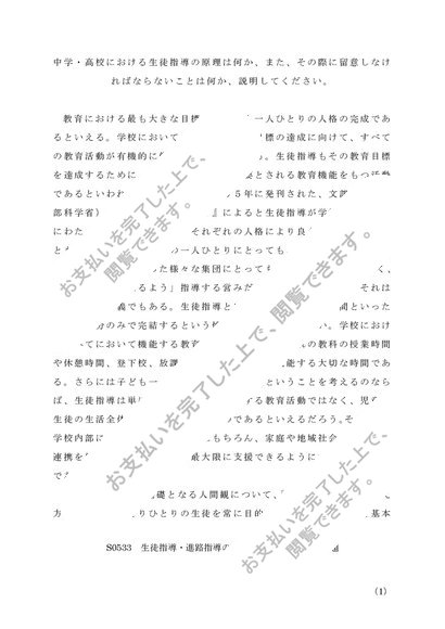 S0533 生徒指導・進路指導の研究(中・高) レポート