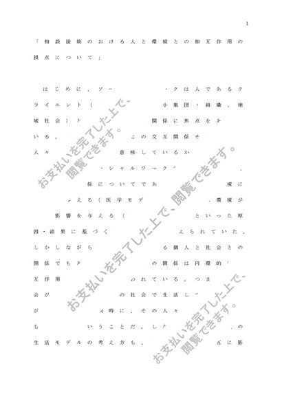 ソーシャルワークⅡ① 「相談援助のおける人と環境との相互作用の視点について」 課題レポートA判定