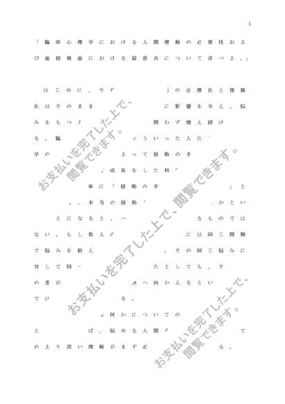 臨床心理学① 「臨床心理学における人間理解の必要性および面接場面における留意点について述べよ。」 課題レポートB判定