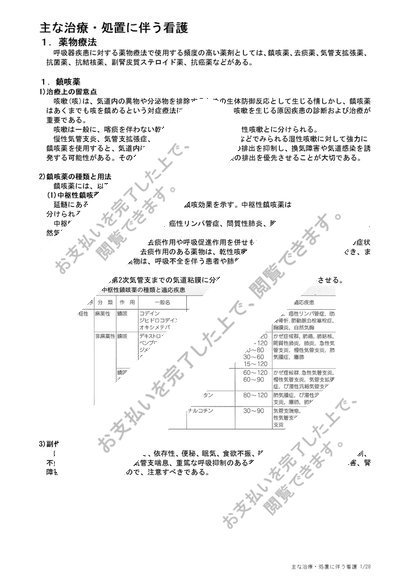 主な治療・処置に伴う看護