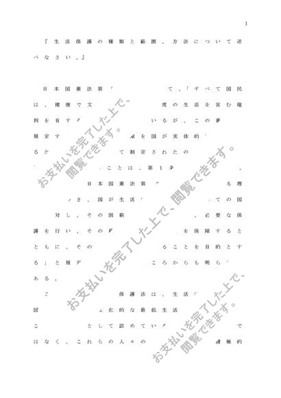 公的扶助論(生活保護の種類と範囲、方法について述べなさい。)