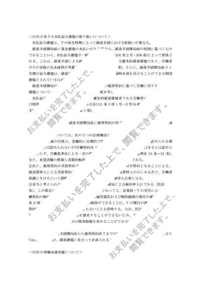 倒産処理法破産法_雇用契約と使用者の破産/B評価合格/中央大学法学部通信教育課程