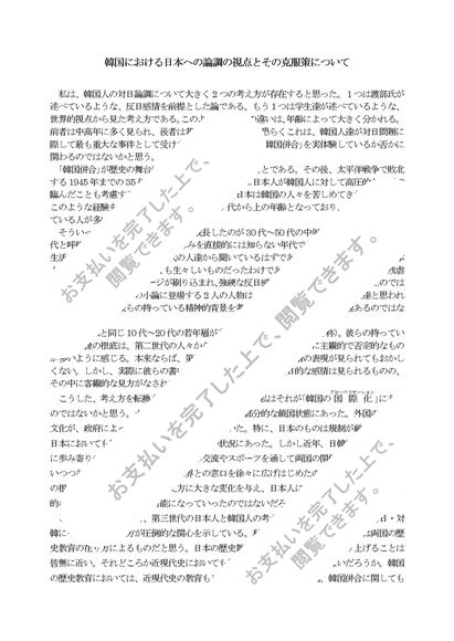 韓国における日本への論調の視点とその克服策について