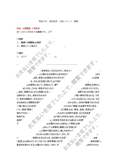 822 人間関係 1単位目 合格レポート 幼稚園教諭2種 明星大学 通信教育