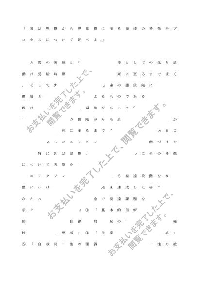 発達心理学①改正版 乳幼児期から児童期に至る発達の特徴やプロセスについて述べよ