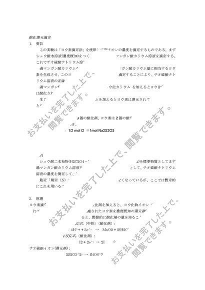 1-2酸化還元滴定(銅(II)イオン(でヨウ化物イオンを酸化)これをチオ硫酸ナトリウムで滴定)