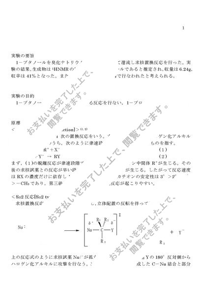 1.求核置換反応(ブタノールと臭化ナトリウムからブロモブタンの作成, SN2反応)