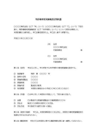特許権専用実施権設定契約書