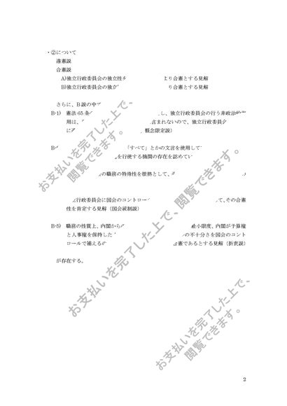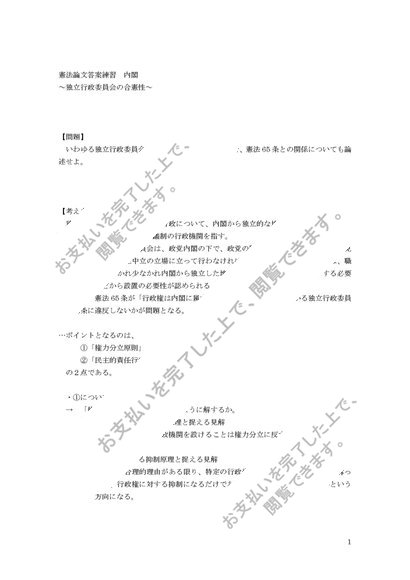 憲法論文答案練習 内閣 独立行政委員会