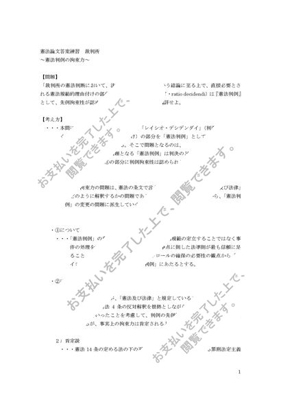 憲法論文答案練習裁判所 憲法判例の拘束力