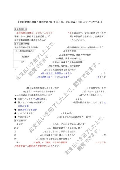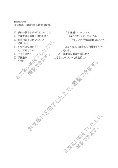 生徒指導・進路指導の研究(初等) 科目最終試験対策 6設題セット