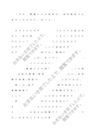 幼児理解「なぜ、環境による保育が、幼児教育では求められるのか、述べよ。」