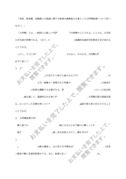国語指導法「家庭、保育園、幼稚園との国語に関する指導の連携協力を基とした入門期指導について述べなさい。」