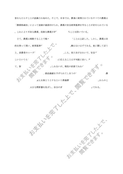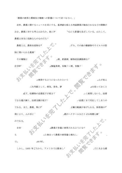 総合演習「農薬の使用と環境及び健康への影響について述べなさい。」