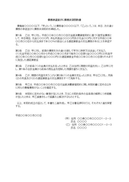 債務承認および債務弁済契約書
