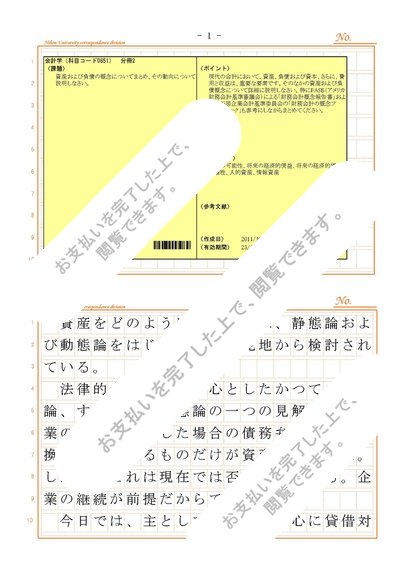 会計学(科目コード0851) 分冊2 合格 日本大学通信