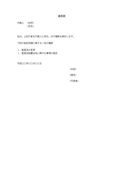 委任状(監査役設置登記)