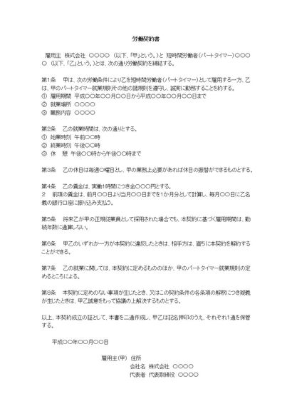 労働契約書(パート)