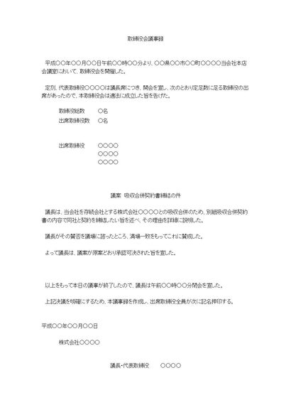 取締役会議事録(吸収合併について)