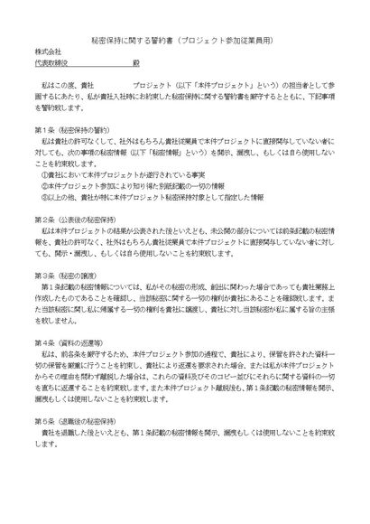 秘密保持に関する誓約書(プロジェクト参加時)