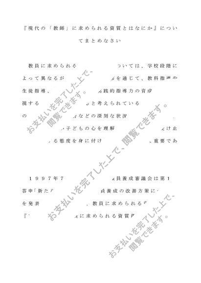 現代の「教師」に求められる資質とはなにかについてまとめなさい