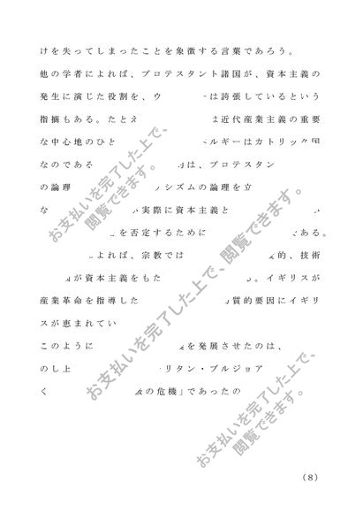 ウェーバーの「プロテスタンティズムの論理と資本主義の精神」について。