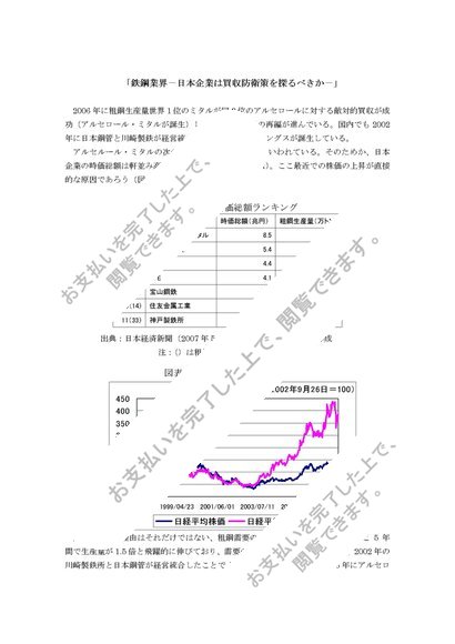 鉄鋼業界-日本企業は買収防衛策を探るべきか-