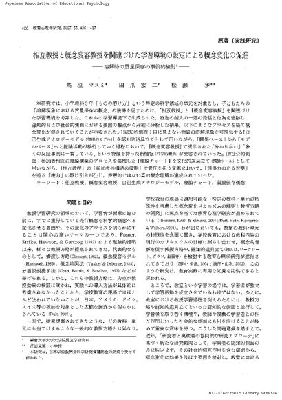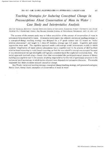 相互教授と概念変容教授を関連づけた学習環境の設定による概念変化の促進 溶解時の質量保存の事例的検討