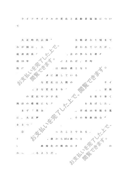 老人福祉論 ライフサイクルの変化と高齢者福祉について