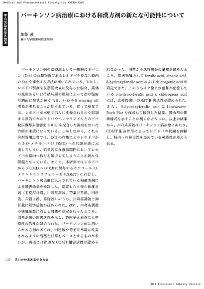 パーキンソン病治療における和漢方剤の新たな可能性について