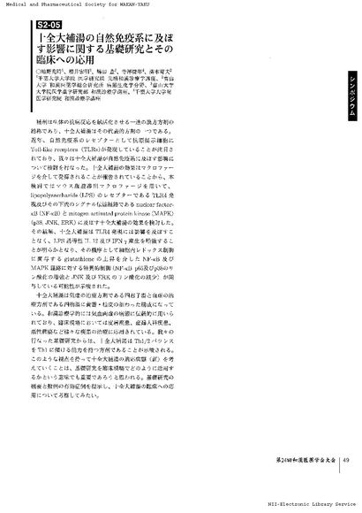 十全大補湯の自然免疫系に及ぼす影響に関する基礎研究とその臨床への応用