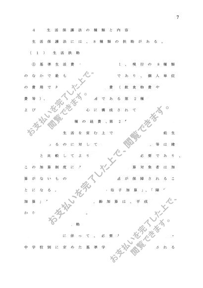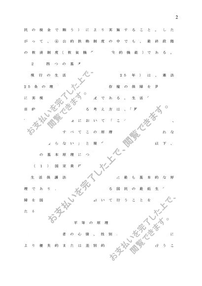 現在の生活保護法の基本原理、種類、内容について述べよ