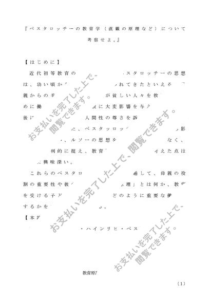 教育原論 第1設題 ペスタロッチーの教育学(直観の原理など)について考察せよ
