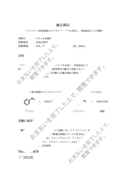 融点測定 −アニリンと無水酢酸からアセトアニリドを合成し、再結晶法により精製−
