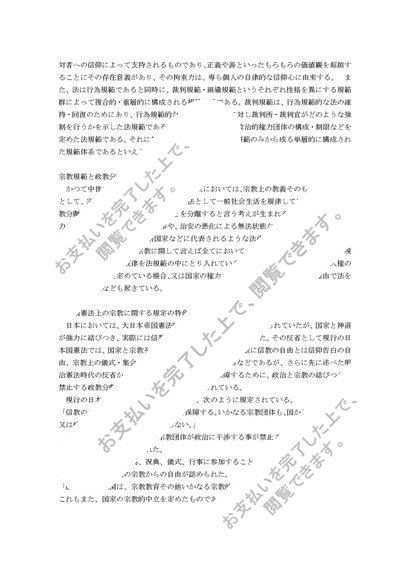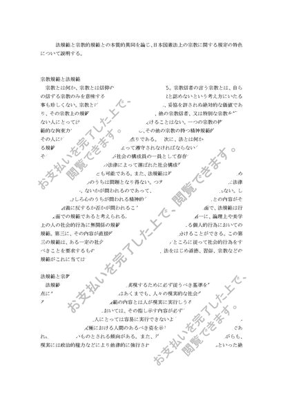 法規範と宗教的規範との本質的異同を論じ、日本国憲法上の宗教に関する規定の特色について説明する