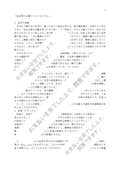 「乳幼児の心理についてまとめよ。」