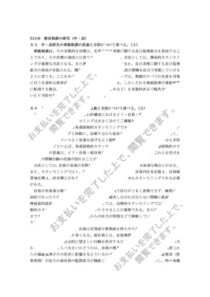 Z1118 教育相談の研究(中・高) 科目最終試験(2014年度)
