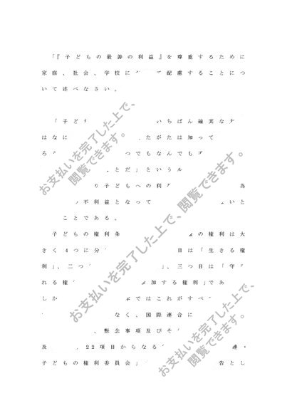 『子どもの最善の利益』を尊重するために家庭、社会、学校において配慮することについて述べなさい。