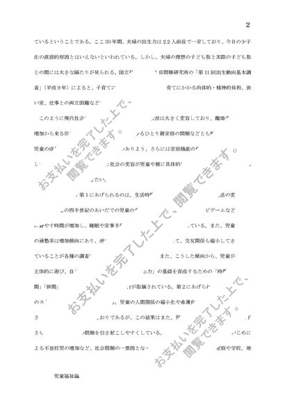わが国の「少子化」の要因および児童に及ぼす影響について述べなさい