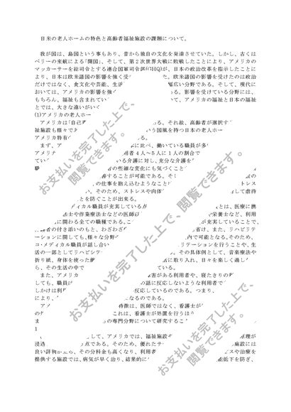 日米の老人ホームの特色と高齢者福祉施設の課題について。