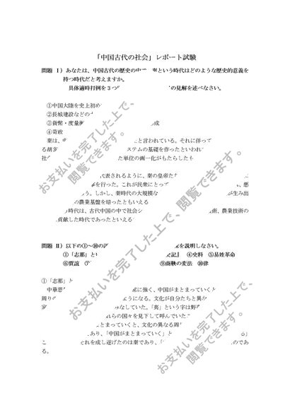 「中国古代の社会」レポート試験