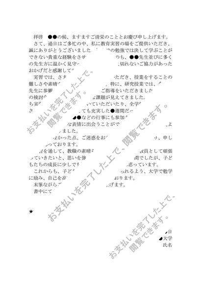 教育実習のお礼状(どの学校でも使いやすく程よい長さです)